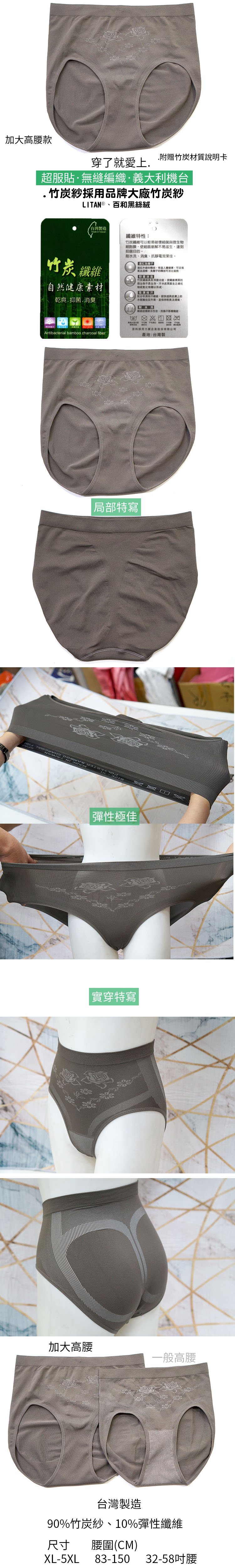 【超彈力一體成型】全竹炭超彈加大無縫內褲(高腰XL-5XL)
