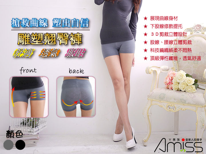 雕塑翹臀平口褲(安全褲)-桃心花紋(2色)