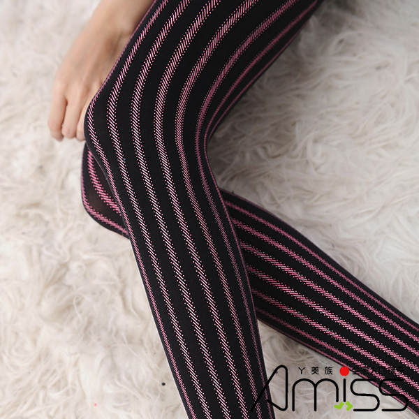 狠腳色印花褲襪-粉色直條