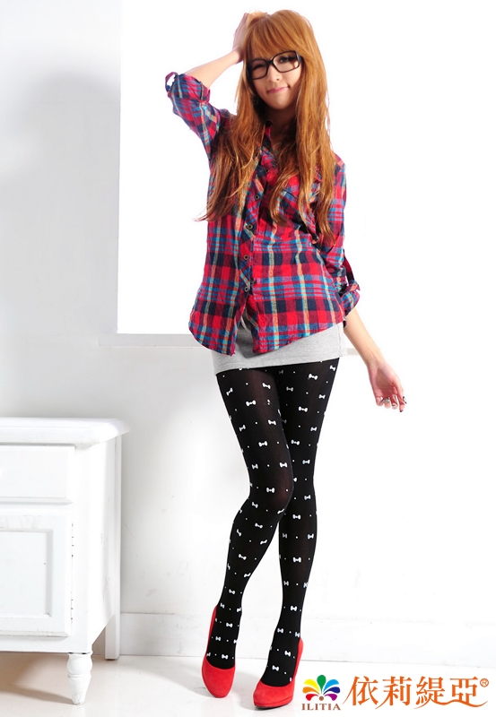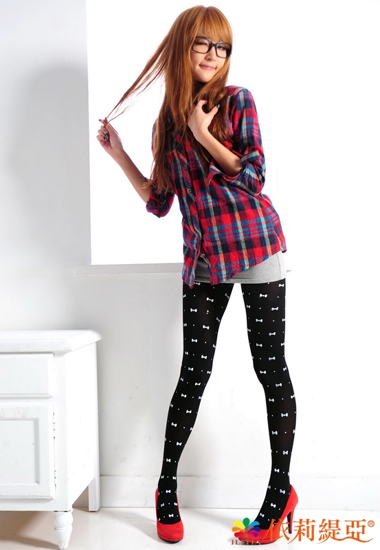 狠腳色印花褲襪-白色小領結